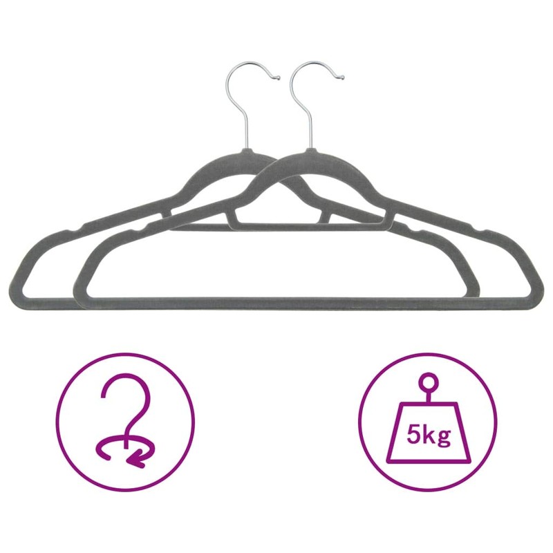 FAMIROSA 100 pcs Clothes Hanger Set Anti-Slip Gray Velvet,8.07 KG,289919
