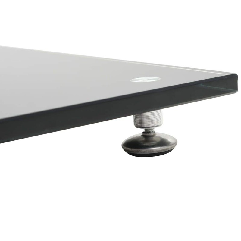 - 【FOUNDATION】Thanks to the heavy-duty tempered glass surface and the sturdy pillars, your speakers will get the needed support. The four skid proof plastic pads under the base plate help to reduce vibration and prevent your carpet or wood floor from being damaged by the base plate.