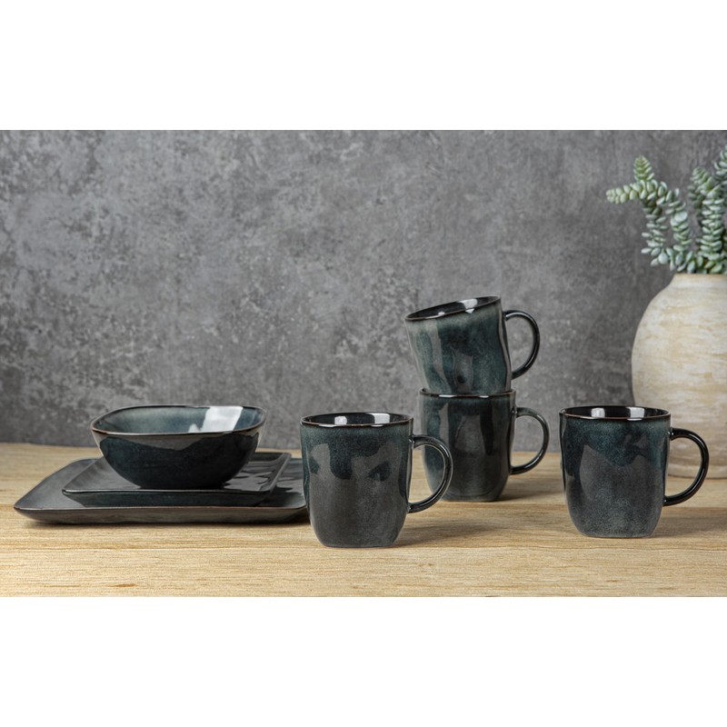 famiware Coffee Mugs Set of 4, Ocean Square 13oz Coffee Cup Set with Handle for Cocoa, Milk, Hot Chocolate, Stoneware Cups for Kitchen, Reactive Glaze, Microwave and Dishwasher Safe, Deep Forest