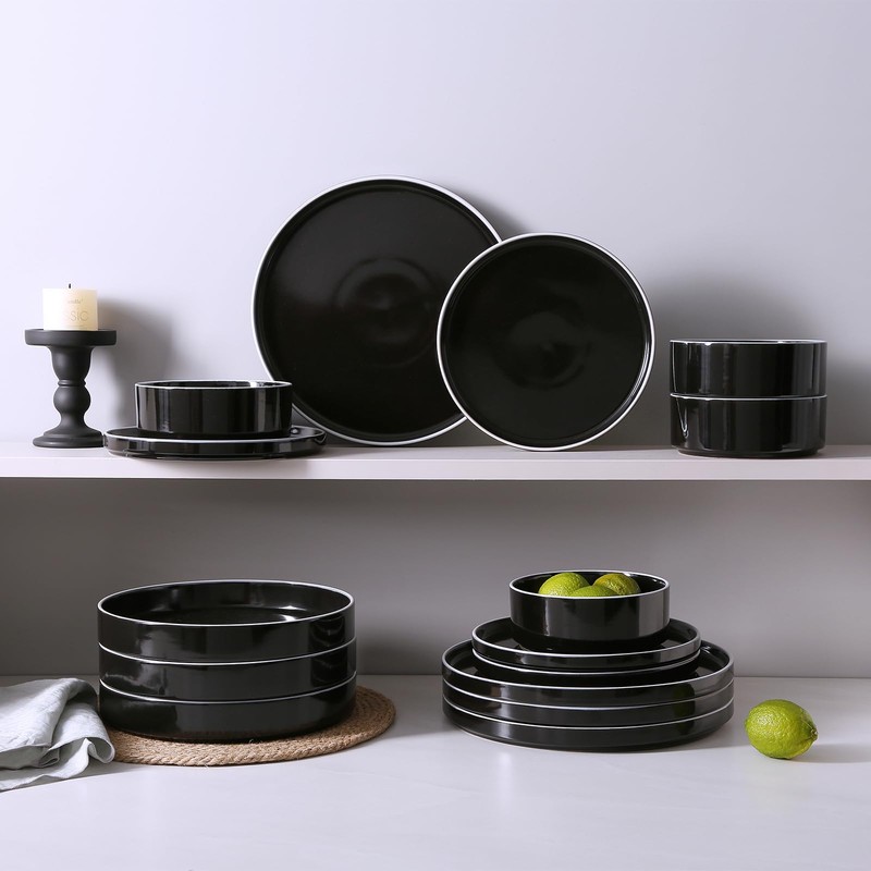 - LOW-KEY LUXURY: This set of tableware is like a black and white symphony, with a deep black base complemented by a white rim, infusing the dining table with an elegant and distinctive lifestyle through its understated luxurious style and unique design.