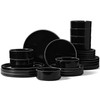 Famiware Nebula Plates and Bowls Set, 24 Pieces Dinnerware Sets, Dishes Set for 8, Black with White Rim