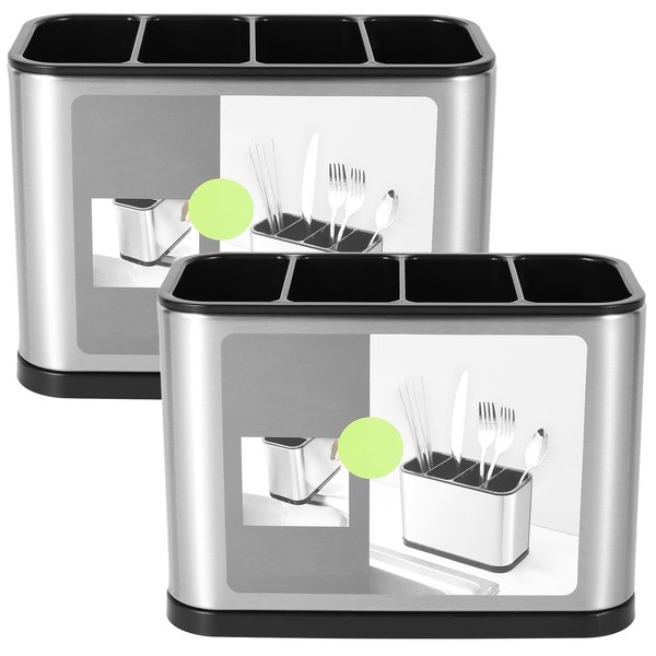 FAMIWIN 2PCS Silverware Cutlery Organizer, Stainless Steel Kitchen Utensil Holder with 4 Compartments for Counter, Caddy Organizer for Faltware Spoon Fork and Tool