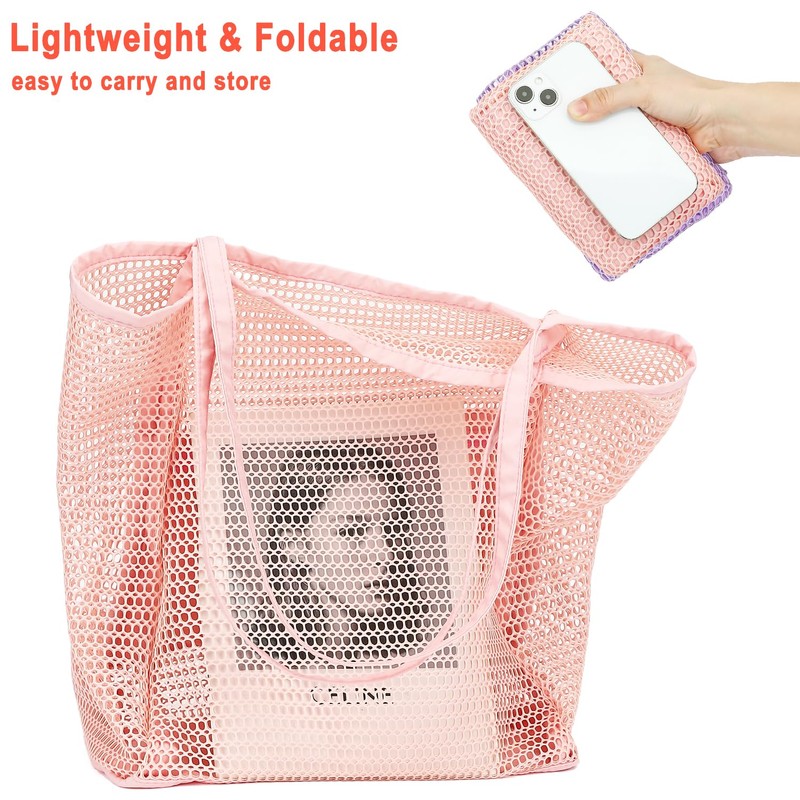 Fammart Mesh Beach Bag, Casual Womens Shoulder Handbag, Large Sandproof Beach Tote Bag for Pool/Travel/Vacation Essentials