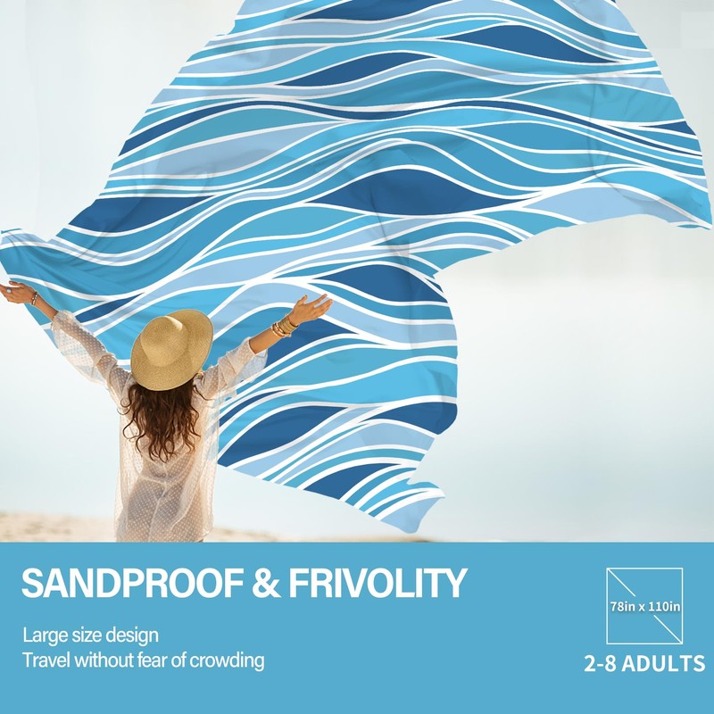 - Oversized Extra Large Beach Blanket :78" X 110"Size,2-8 Adults in total,Made by parachute fabric,More than 30% larger than other blankets,15 oz easy to carry!