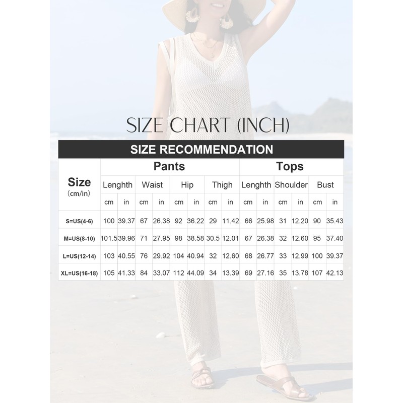 - 2 Pcs Sets: Sexy sleeveless tank tops and wide leg pants match two piece casual outfits sets. Crochet two piece set can be worn together or separated with other pieces for different fashion