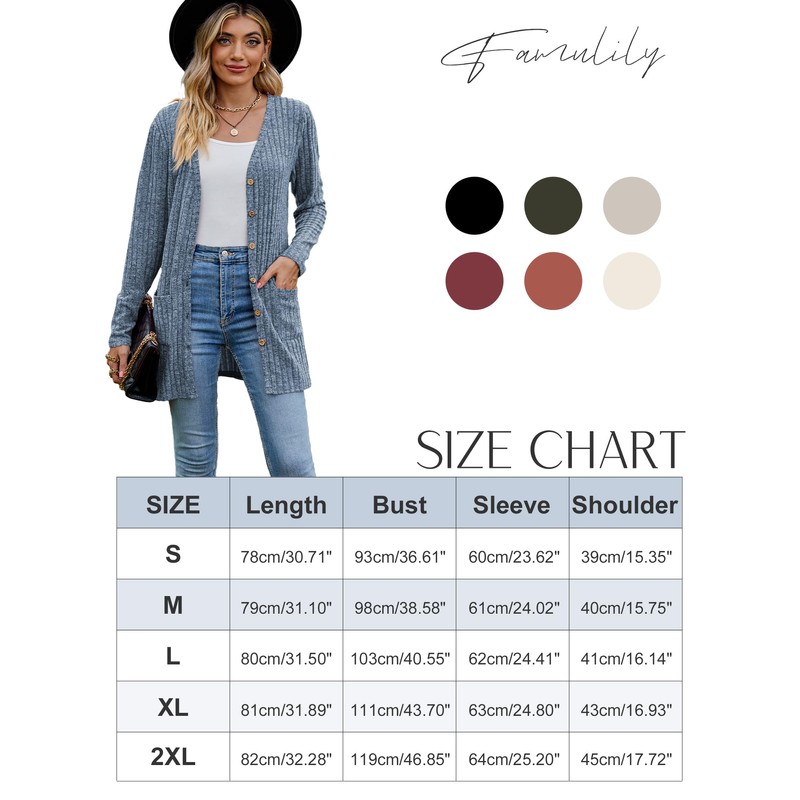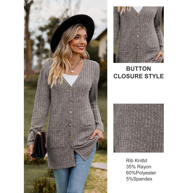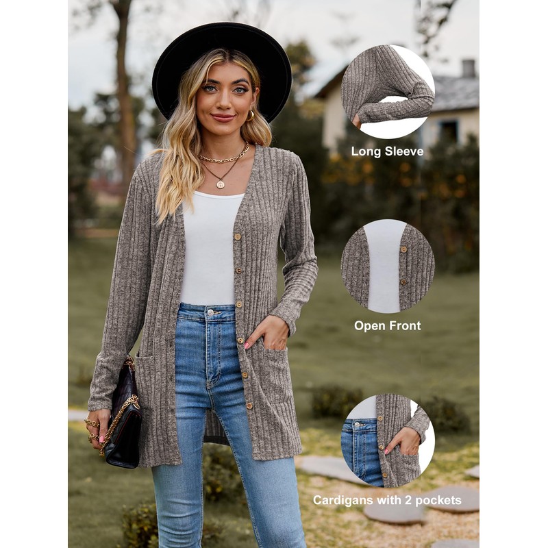 - Features design: casual long cardigans for women with long sleeves, open front, ribbed knit plain knit, button-down cardigans with 2 pockets, beautiful cardigan drapes well and fits well for different body types, medium length above the knee only covers the butt, super chic and elegant