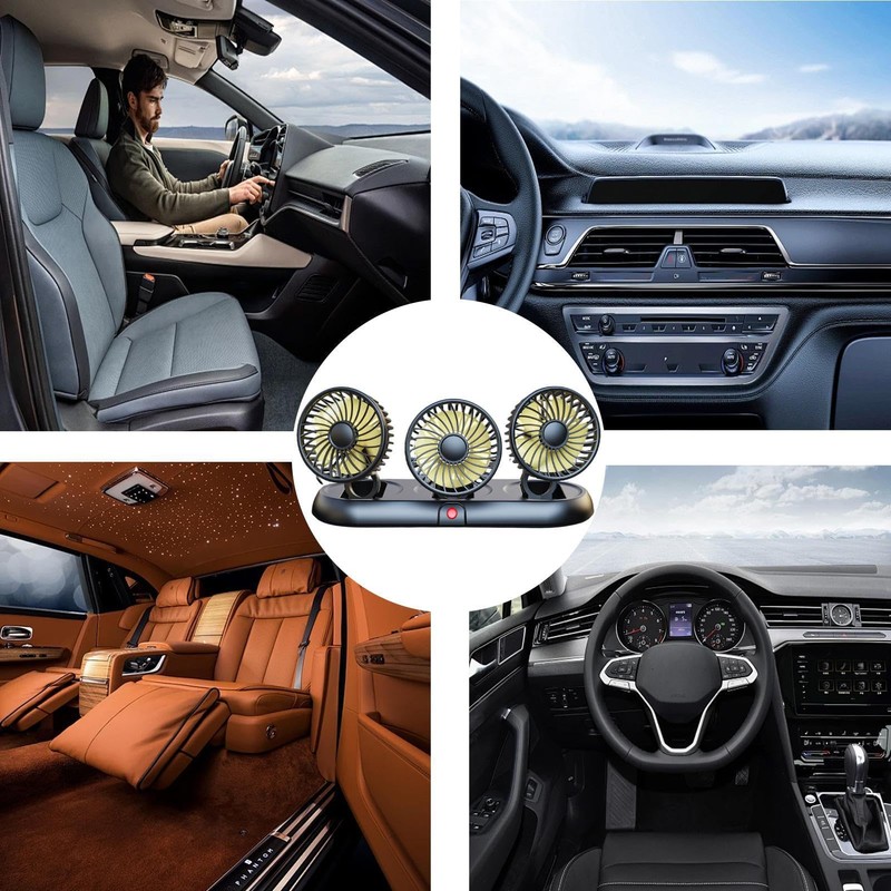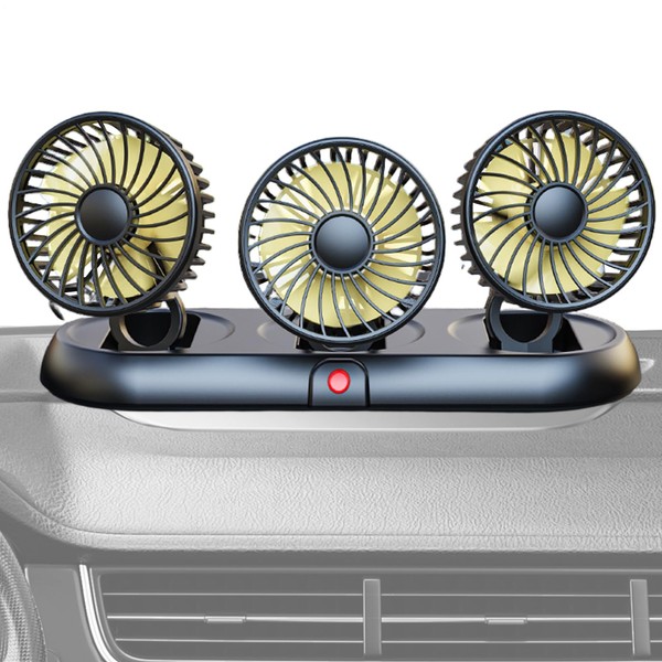 Fan for Car, Multifunctional Dashboard Fan Three-head, 3 Adjustable Wind Speeds, Small Hot Weather Cooling Device for Vehicles Sedans