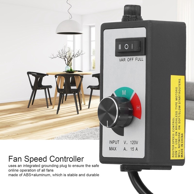 1、High Quality Material: The regulator is made of ABS+aluminum, which is stable and durable, ensuring a long service life. 2、Safe Operation: The adjuster uses an integrated grounding plug to ensure the safe online operation of all fans. 3、Settable: The fan flow adjuster has a switch, which can be set to 3 levels, variable, closed and completed. 4、Multi Function: The fan flow adjuster is convenient for online adjustment of the fan and duct fan speed. 5、Scope of Application: Suitable for various fan ventilators with a power of 1500W, electric tools, fans, lamps, flow pumps and other equipment