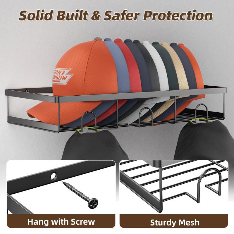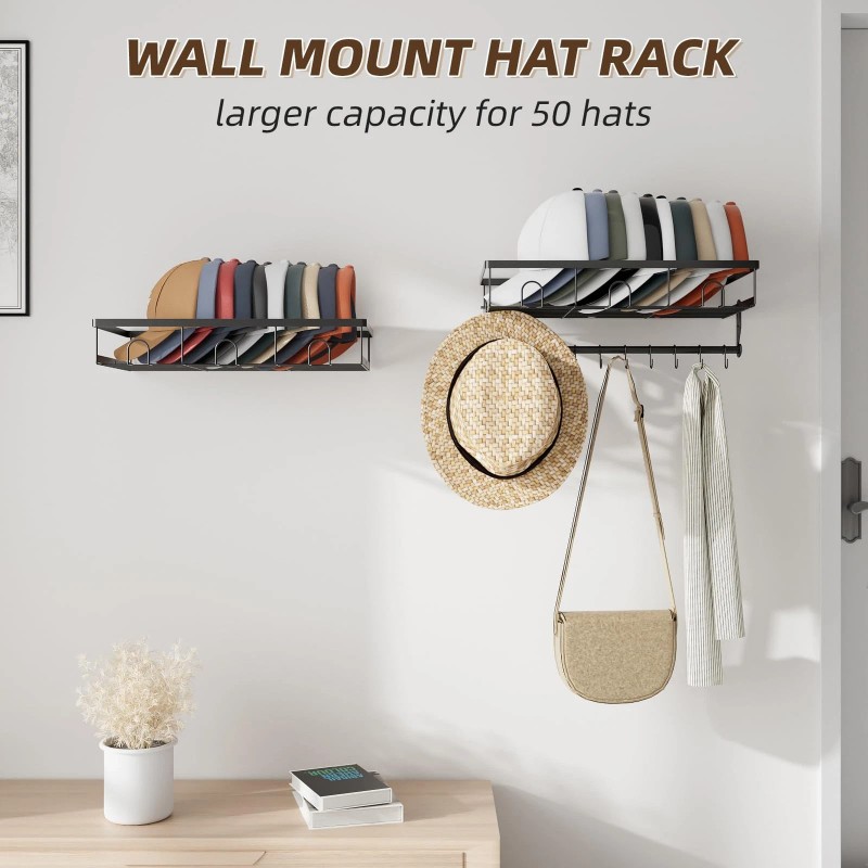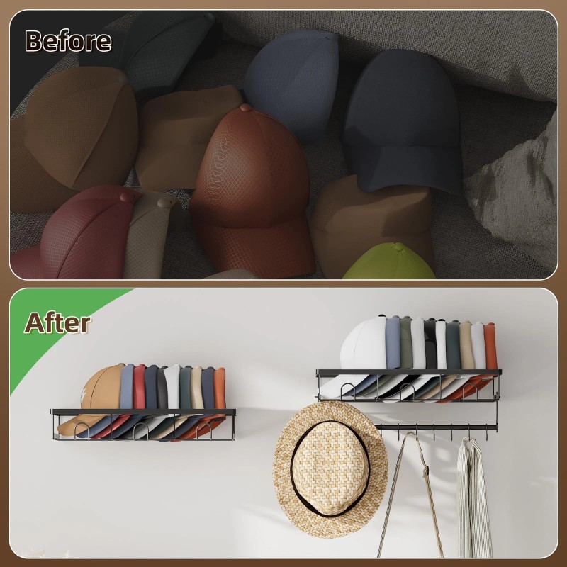【UPGRADED HAT RACK】Our hat rack combines wall mounted hat storage and hat hanger, and we have exclusively designed this 2-in-1 more practical hat organizer, which make the most of your space to keep your wall neat