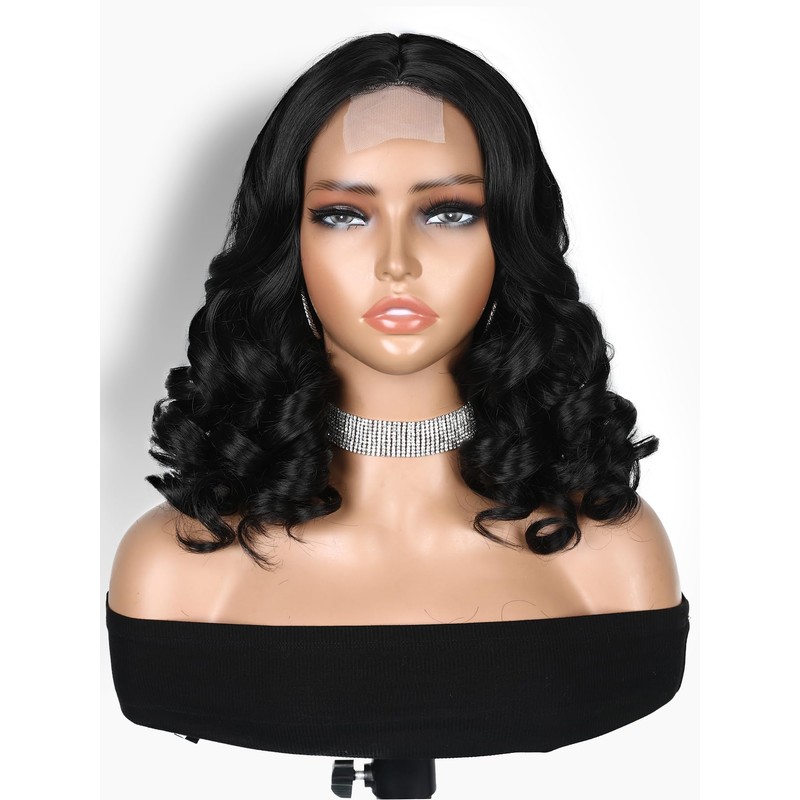 Fancy Hair Loose Wavy Wigs Bouncy Short Curly Bob Wig with Small Lace Synthetic Shoulder Length Short Wavy Wig for Black Women