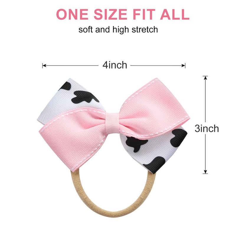 Fancheer Baby Girls Cowgirl Pink Cow Bow Headband Infant Toddler Birthday Party Dress Up Hair Accessories