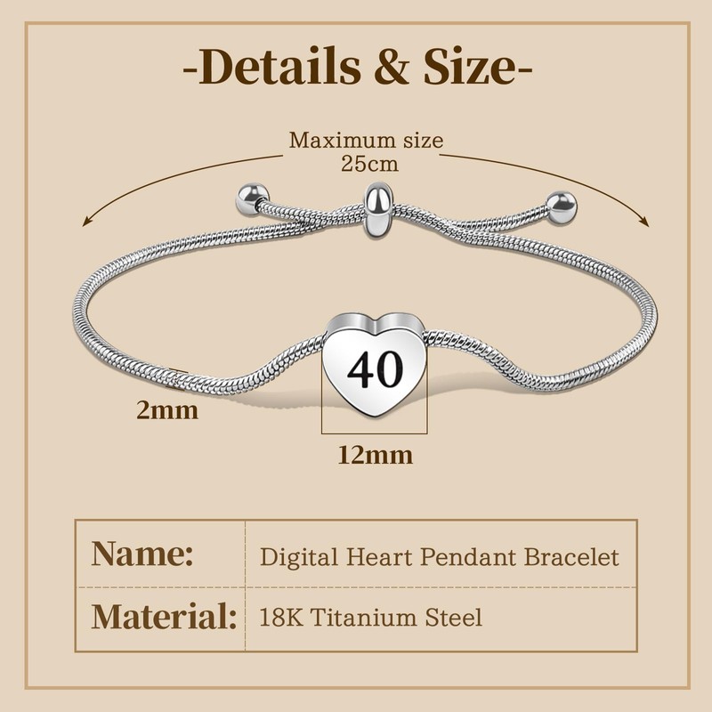 - STAINLESS STEEL BRACELET WOMEN: This women bracelet is made from 18k silver plated quality metal, featuring polished and laser engraved age numerals to enhance the heart charm