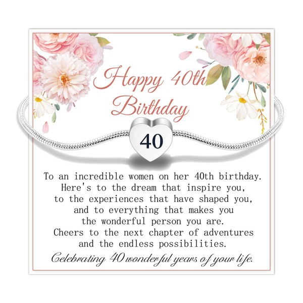 FANCIBAND 40th Birthday Gifts For Women Silver Bracelet For Woman With Heart Charm Anniversary/Christmas/Valentine'S Day Gift For Women