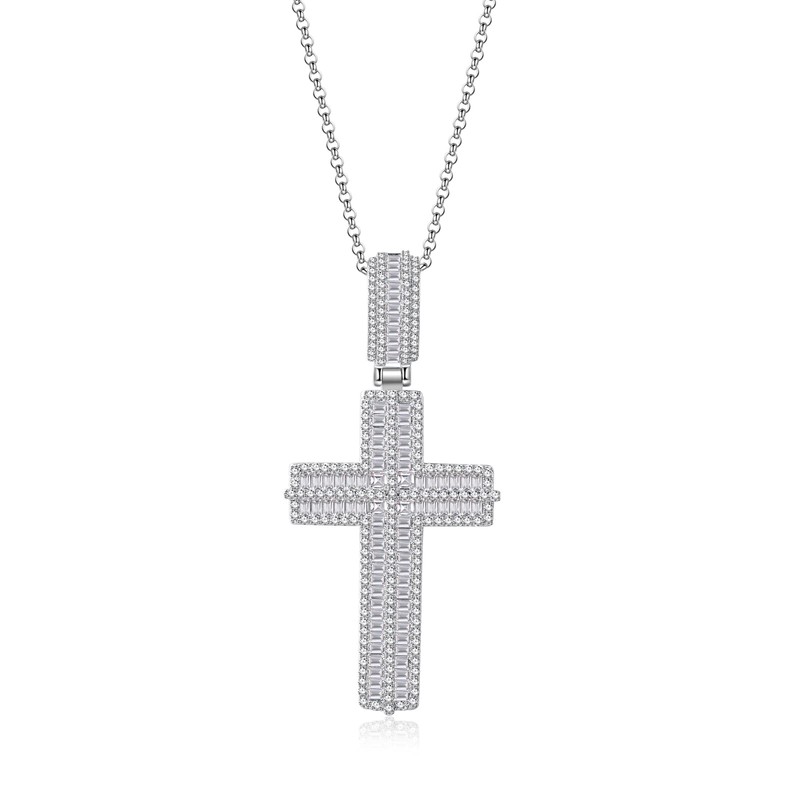 FANCIME "Alice White Gold Plated 925 Sterling Silver Dazzling Royal Faith Designs Stone White CZ Cross Crucifix Pendant Necklace Silver Jewelry Gifts UNISEX, 24 INCHES Best Valentines Day Gift