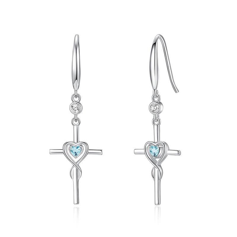 - 🎁Aquamarine Cross Earrings Gift For Her 🎁 The Aquamarine cross earrings is designed by infinite love. The heart birthstone in the center of the cross will bring unlimited faith, hope, love and happiness to the important person you love. Show her your infinite love. It will be a meaningful gift for women.