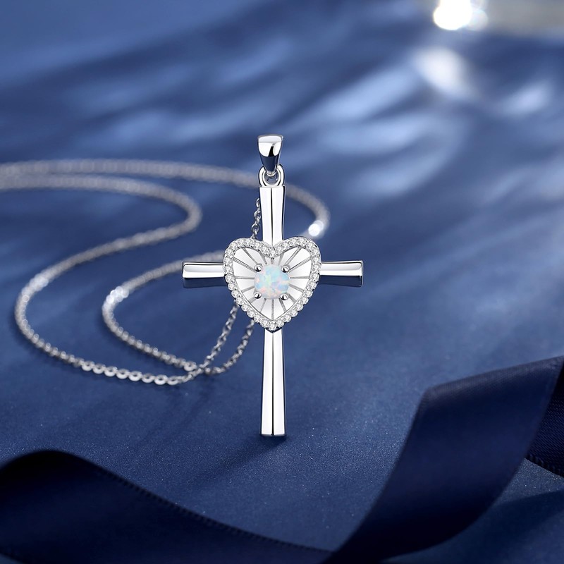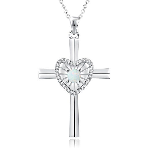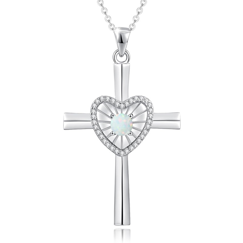 - 🎁Cross Necklace Gift For Her 🎁 The Opal cross necklace is designed by heartbeat. The heart birthstone in the center of the cross pendant will bring unlimited faith, hope, love and happiness to the important person you love. Show her your heartbeat. It will be a meaningful gift for women.