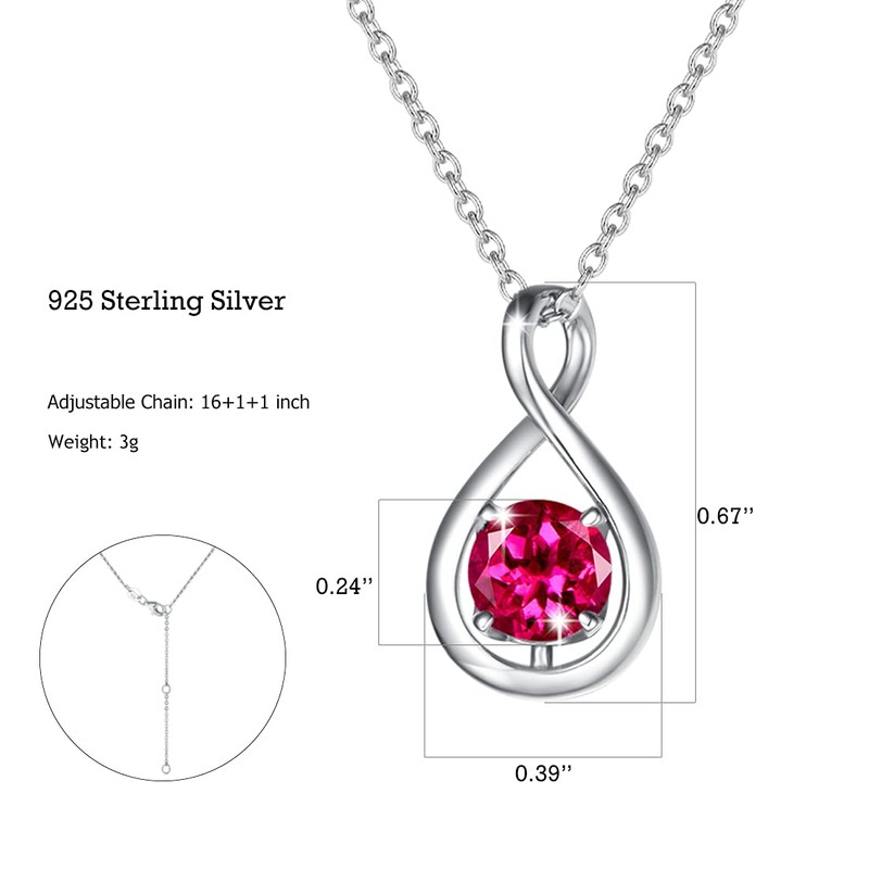 - ❤July Birthstone Jewelry❤ This infinity birthstone necklace is inlaid with stunning and shining created ruby. Ruby is the July Birthstone, Represents power and love. Known as the "Stone of Love", it also the stone given to celebrate the 40th wedding anniversary.