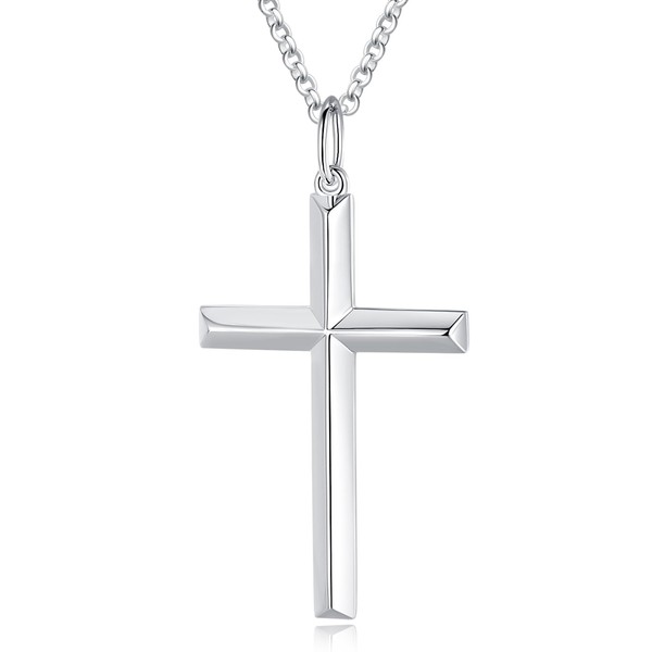 FANCIME Solid 925 Sterling Silver with White Gold-Plated Cross Pendant with Silver Chain for Men Boys Children – Chain Length: 60 cm, Sterling Silver, No Gemstone