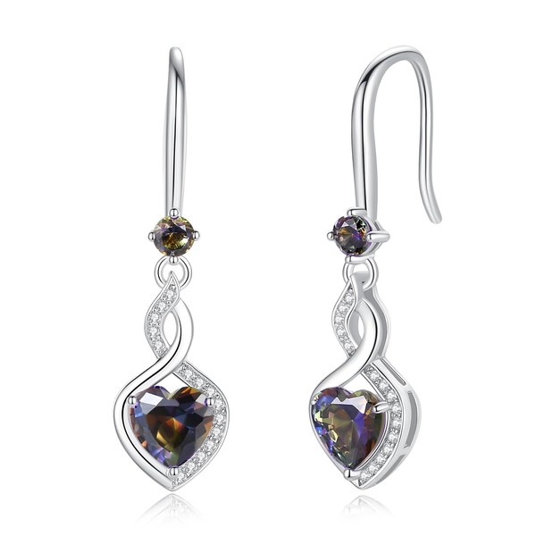 FANCIME Valentine's Day Gifts Alexandrite Heart Infinity Dangle Drop Earrings 925 Sterling Silver June Birthstone Earrings Fine Jewelry Birthday Gifts for Women