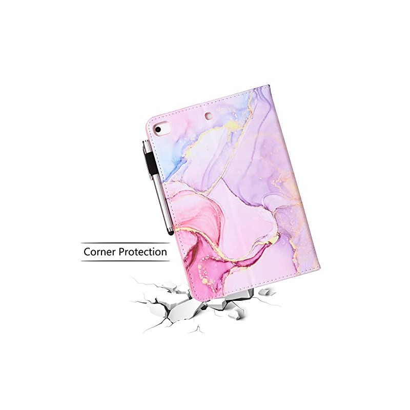 Fancity iPad Mini 5 Case Mini 4 Mini 3 2 Cover, FANCITY Smart Wake Sleep Flip Stand Case Soft PU Leather Protective Case with Card Slot Pen Holder for Apple iPad Mini 1 2 3 4 5 - Pink Marble