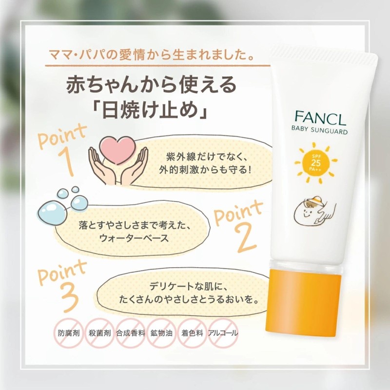 FANCL Baby Sun Guard (SPF25, PA++), Sunscreen, Additive-Free (Baby/Newborn), Face, Non-Chemical, Hypoallergenic, UV Absorbent, No UV