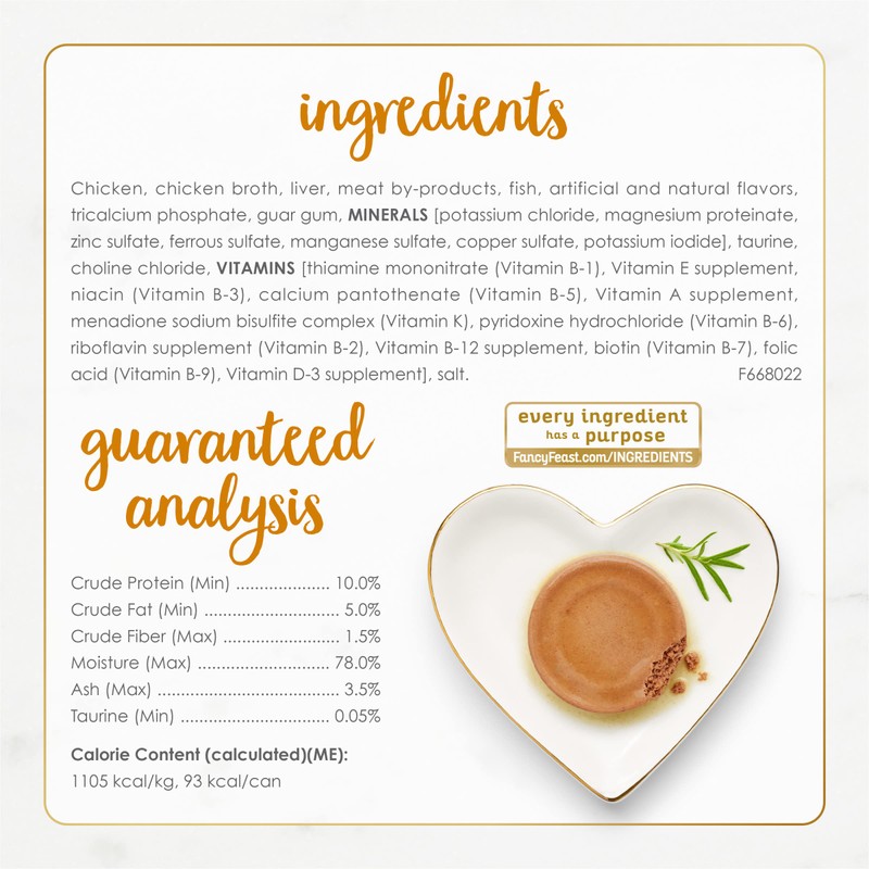 - Purina Fancy Feast pate cat food developed in partnership with our expert nutritionists to create a unique and unforgettable taste experience for your cat