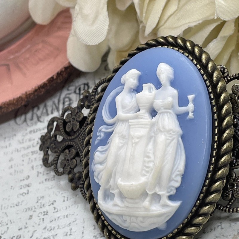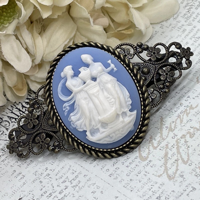 FANCY FOX BOUTIQUE Festival Mythology Greek Grecian Goddess Blue White Cameo Wedding Pin Hair Clip