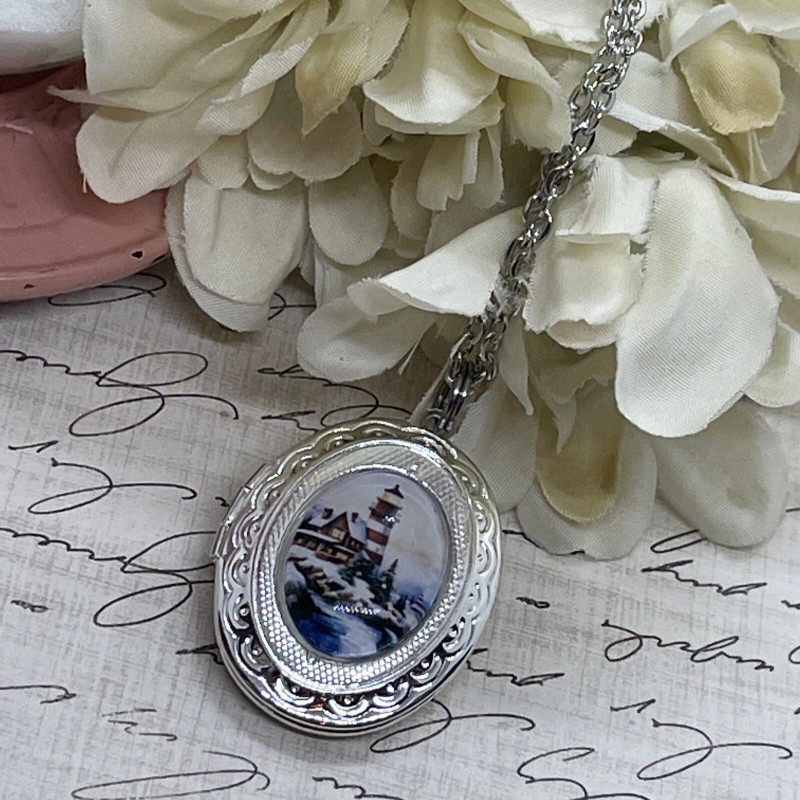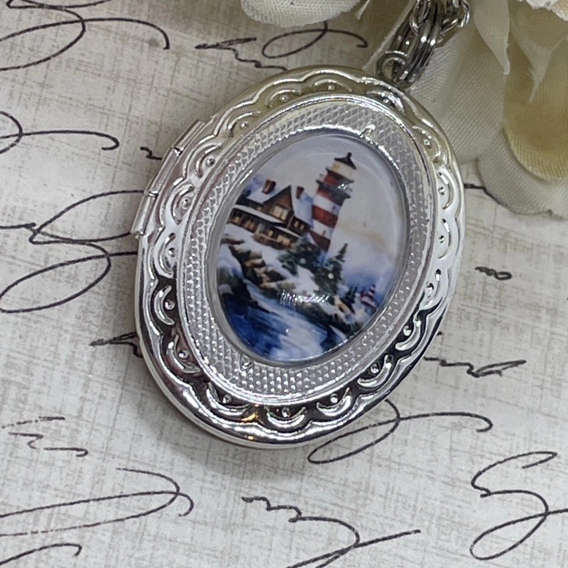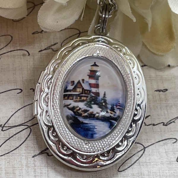 Fancy Fox Boutique Silver Lighthouse Nautical Beach Locket Necklace Pendant Wedding Mother Bridal