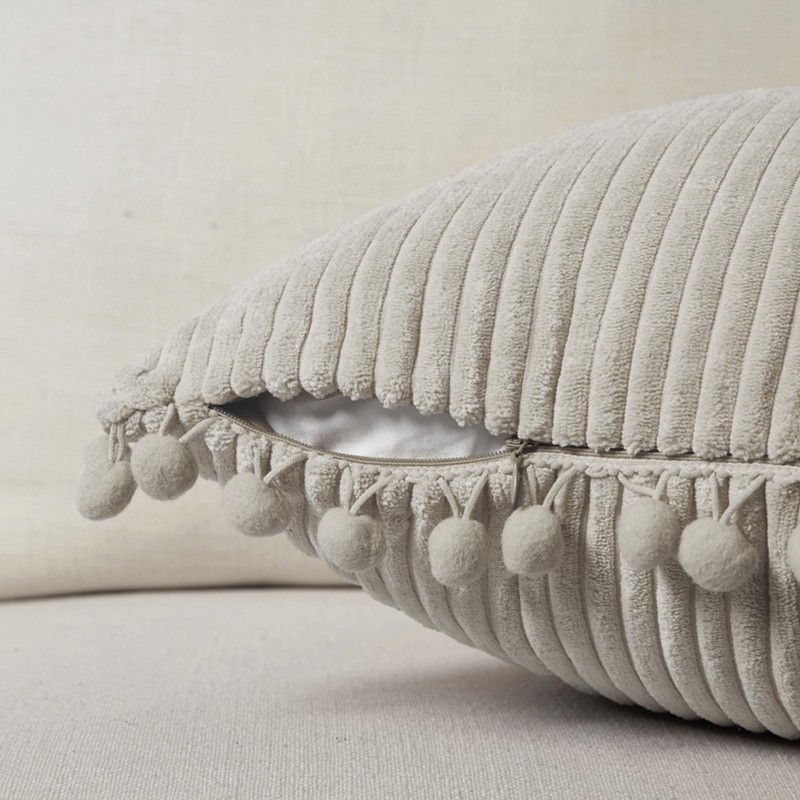 Fancy Homi Pack of 2 Boho Neutral Taupe Lumbar Decorative Throw Pillow Covers with Pom-poms, Soft Corduroy Solid Rectangle Cushion Cases Set for Couch Sofa Bedroom Car(12x20 Inch/30x50 cm)