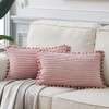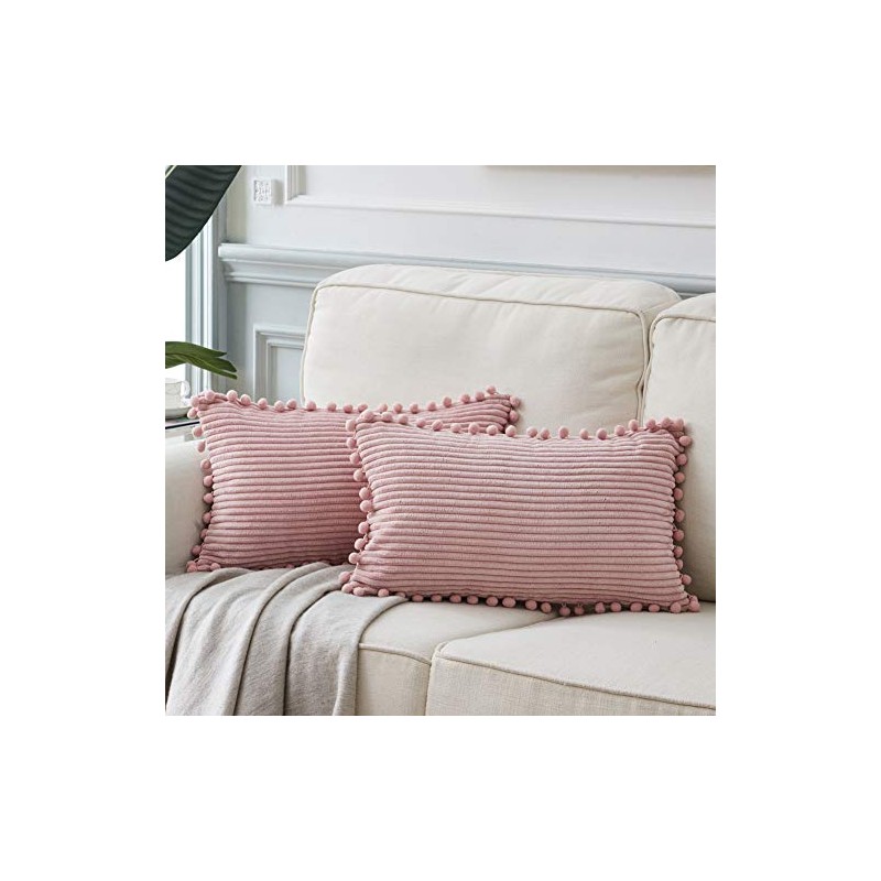 Fancy Homi Pack of 2 Boho Rectangle Decorative Throw Pillow Covers with Pom-poms, Soft Corduroy Accent Solid Cushion Case Set for Couch Sofa Bedroom Car Living Room (12x20 Inch/30x50 cm, Blush Pink)