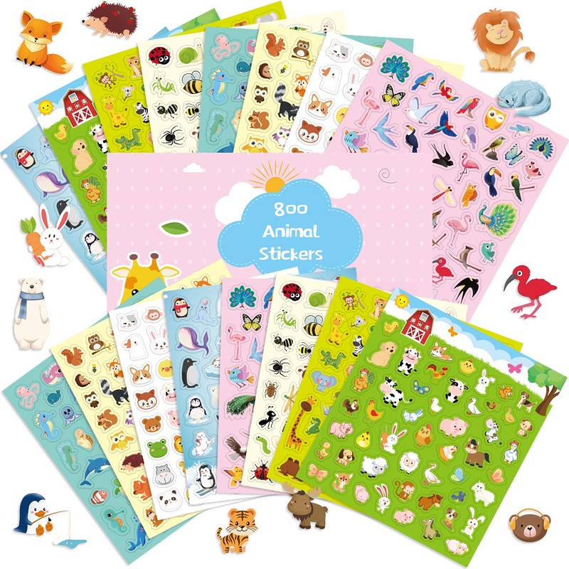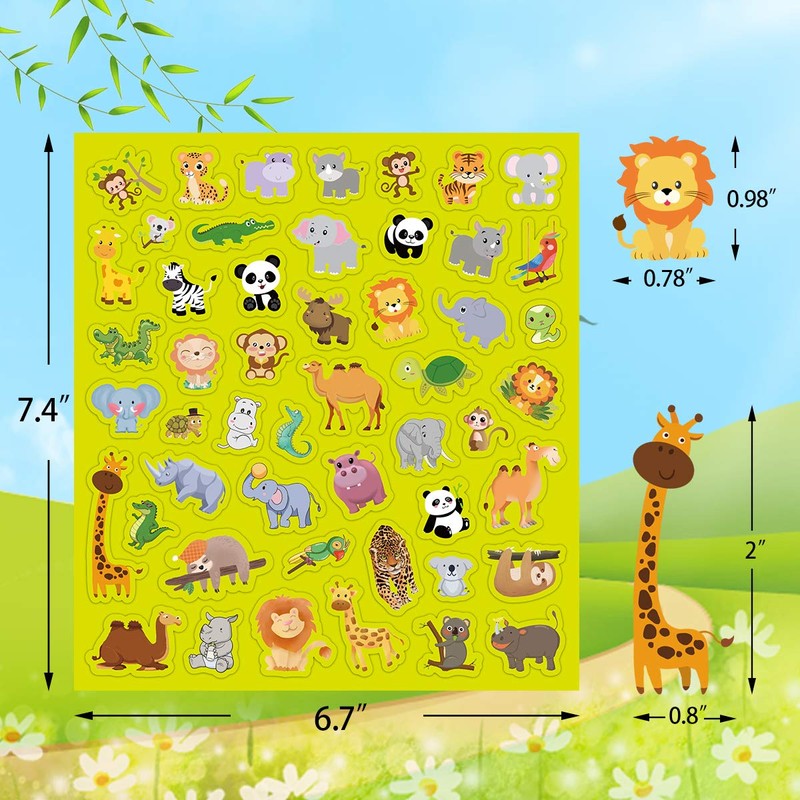- Package Includes: 16 assorted animal sticker sheets, 800 stickers in 400 unique designs. Each sheet measures 6.7” X 7.4”. Stickers are repositionable.