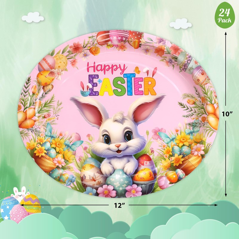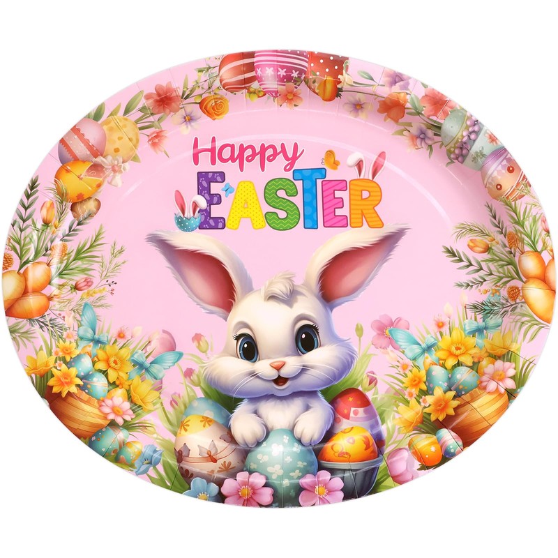 Fancy Land Easter Oval Paper Plates Easter Bunny Disposable Serving Platters for Holiday Party Supplies Tableware Favors 24Pcs
