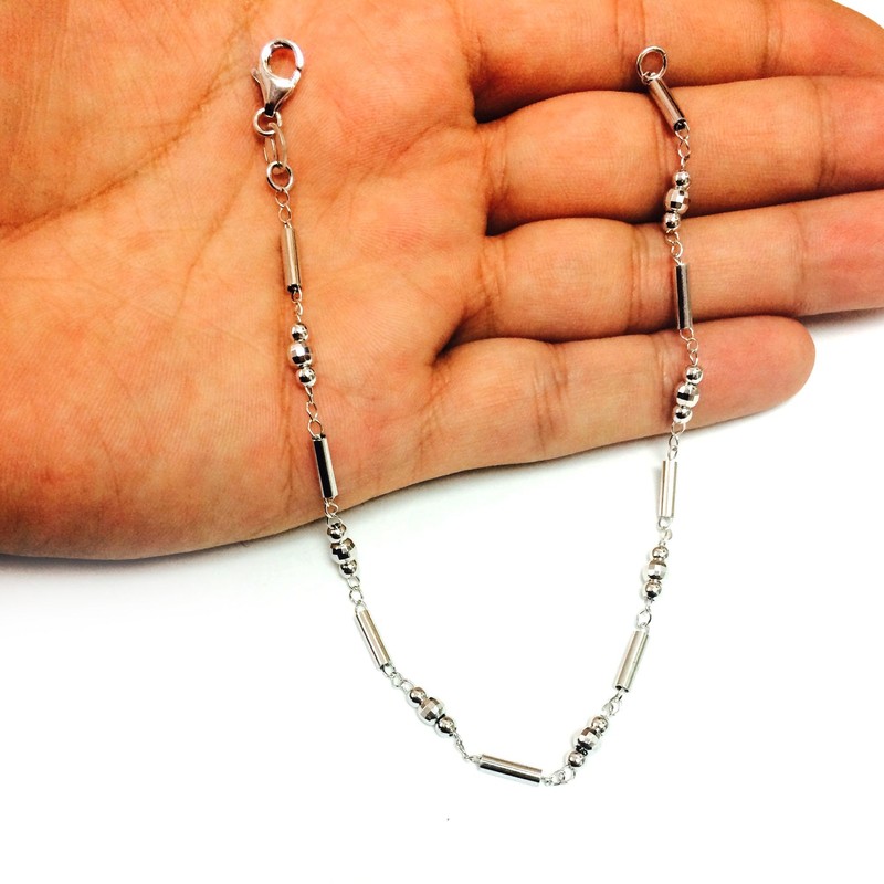 - The anklet is rhodium plated and has a high polished finish that gives it a shiny look
