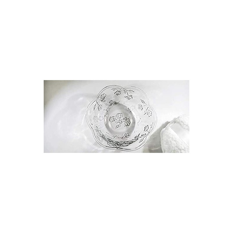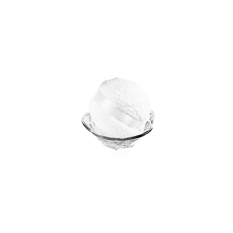 Fancy Molded Glass Dish and Medium Fleece Powder Puff for Dusting Powder 5 Inch Diameter