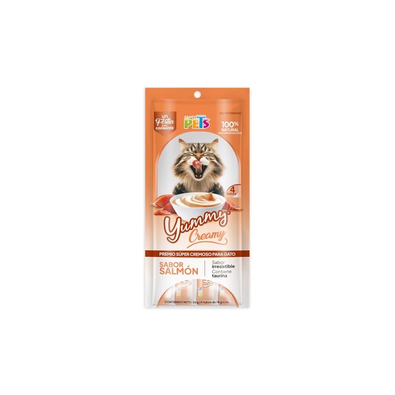 Fancy Pets Yummy Creamy Premio para Gato CREMOSO Sabor Salmon 4 Tubos