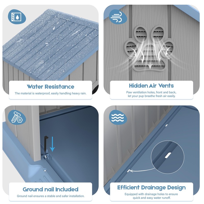 - Built to Last: Crafted from heavy-duty PP (polypropylene), this dog house resists scratches, wear, and water damage. Its weatherproof construction stands up to rain, sun, and harsh elements without warping or cracking.