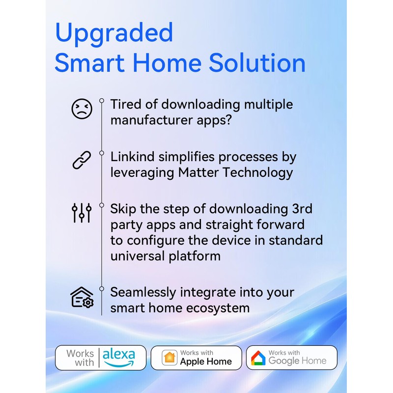 - 6.Privacy Protection: Matter's end-to-end encrypted connection ensures your device's security with industry-standard cryptographic techniques. Rest assured, your data will stay on your device, providing optimum privacy