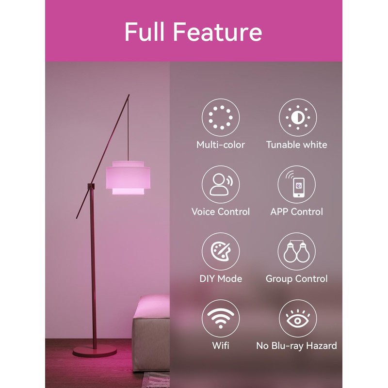 - 5.Healthy Light Source& High Quality: 8.5W is equivalent to a 60W incandescent light bulb, saving energy and money. One 9W A19 smart bulb covers a room of about 54ft². No blue-Ray hazard, different from inferior LED bulbs, and we don't have too eye-catching colors. 60HZ, not easy to cause visual fatigue, vision loss, migraine and other problems.