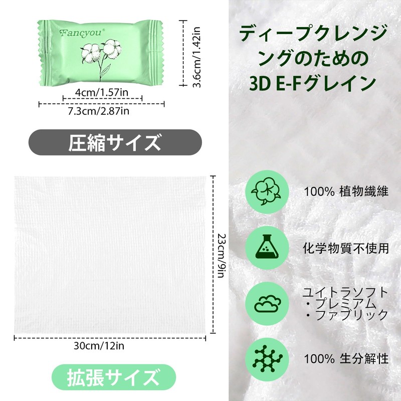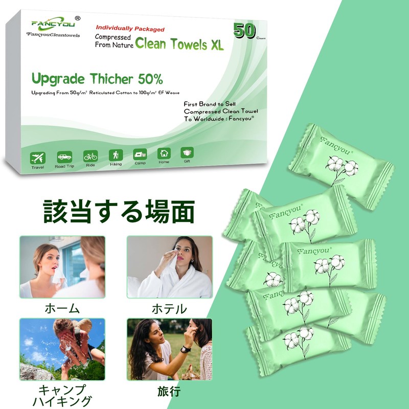 Fancyou Compressed Towel, Large Size, Disaster Preparedness, Cotton, Thick, 50 Pieces, Compact Towels, 11.8 x 9.1 inches (30 x 23 cm), Compact Towels, For Disasters, Cotton Tissue Disposable Face
