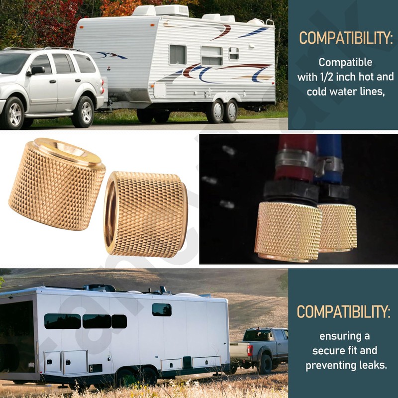 FancyTark 【Upgrade Brass】 2 Pack Low Point Drain Seals and Caps Compatible with RV/Camper/Travel Trailer 1/2 Inch Hot & Cold Water Lines