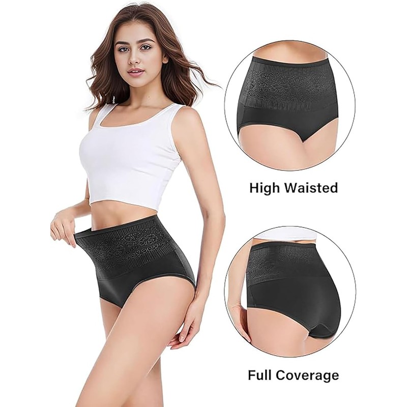 - [SEAMLESS COMFORT AND FASHIONABLE STYLE] Our cotton underwears are made from a comfortable, moisture-wicking blend for a fresh, airy feel. The high-waisted, stretchy lace-trimmed panties have a vintage classic look that many find stylish and flattering. They provide all-day comfort and a smooth, flattering fit.