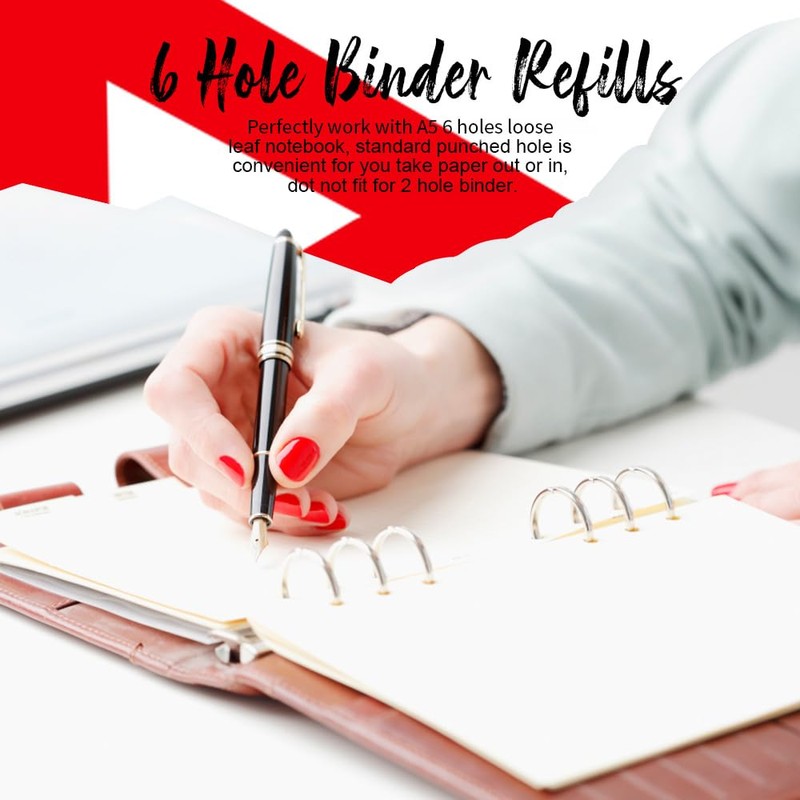 • International A5 6-hole Binder Refills- Perfectly work with A5 6 holes loose leaf notebook, standard punched hole is convenient for you take paper out or in (please note this paper DO NOT fit for A5 2-hole binder)