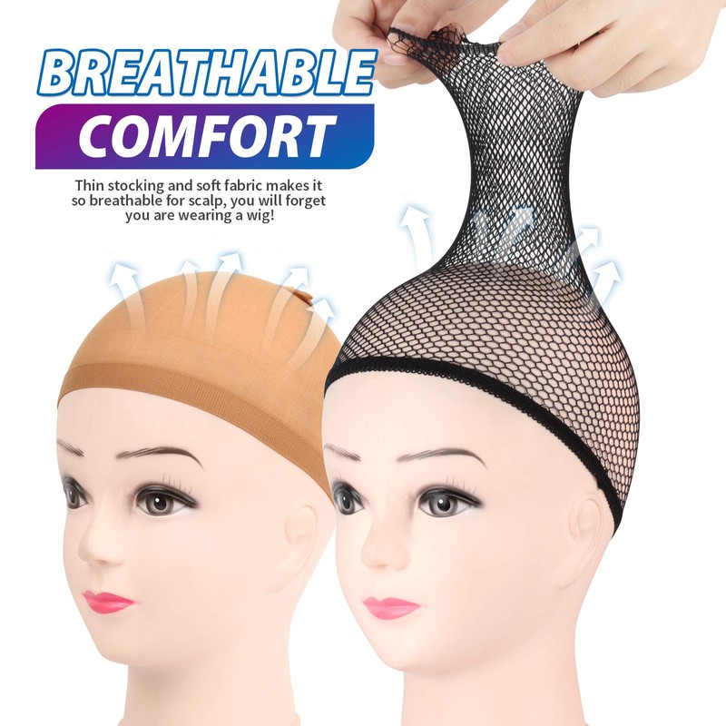 • 6 pieces wig caps: set includes: 4 × light brown wig caps (2pcs in one cardboard, total 2 cardboard = 4 pieces. ), 2 × black hair net. Suitable for almost all situations where you need a wig: Party, prom, dinner, movie, mask game, Halloween, Christmas, work, etc.