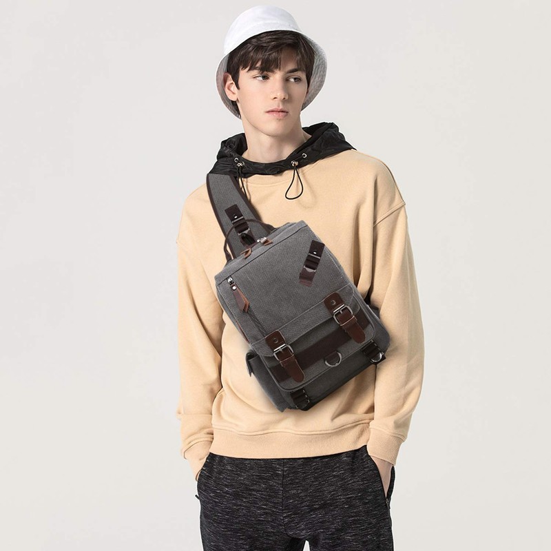 FANDARE Retro Chest Bag Sling Bag Men's Backpack Women's School Bag Canvas School Backpack Shoulder Bag Backpack Sports Bag for School Leisure Travel Business Jogging, Grey A, Leisure backpack