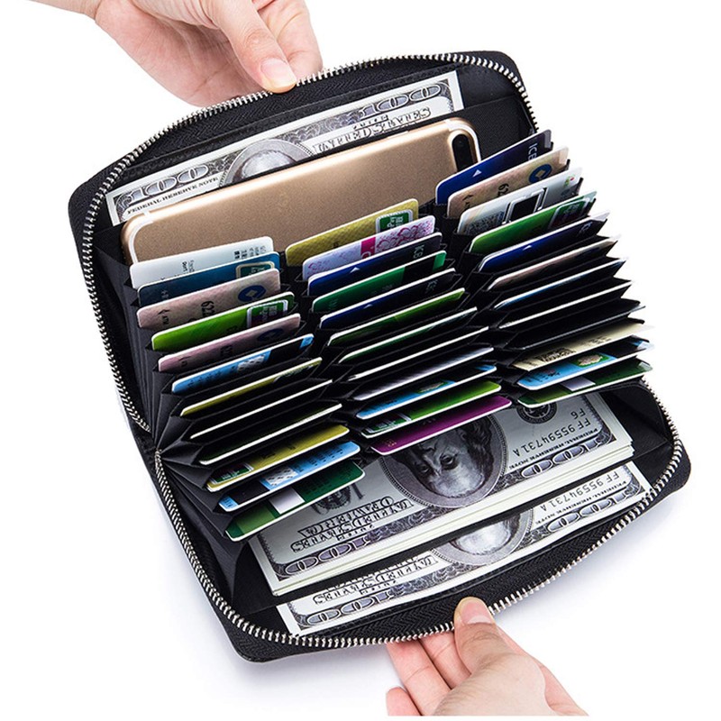 - Large capacity - Dimensions: 10 x 3 x 20 (length x width x height). Leather wallet with 36 * card slots, 2 x banknote positions, 2 x money compartments. With multiple pockets, you can store debit cards, credit cards, bank notes, ID cards, access cards and hotel room cards, passport, 5.5 inch phone, etc. in a reasonable store. Large capacity, soft and comfortable, portable, lightweight.