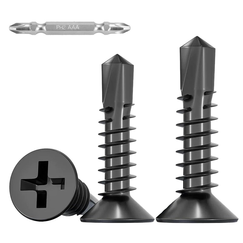 - Construction & Function: Self-drilling tip with cutting grooves or spiral grooves - combines drilling and tapping in one step. No pre-punching required! Directly penetrates metal sheets, wood, plastic and more for quick assembly.