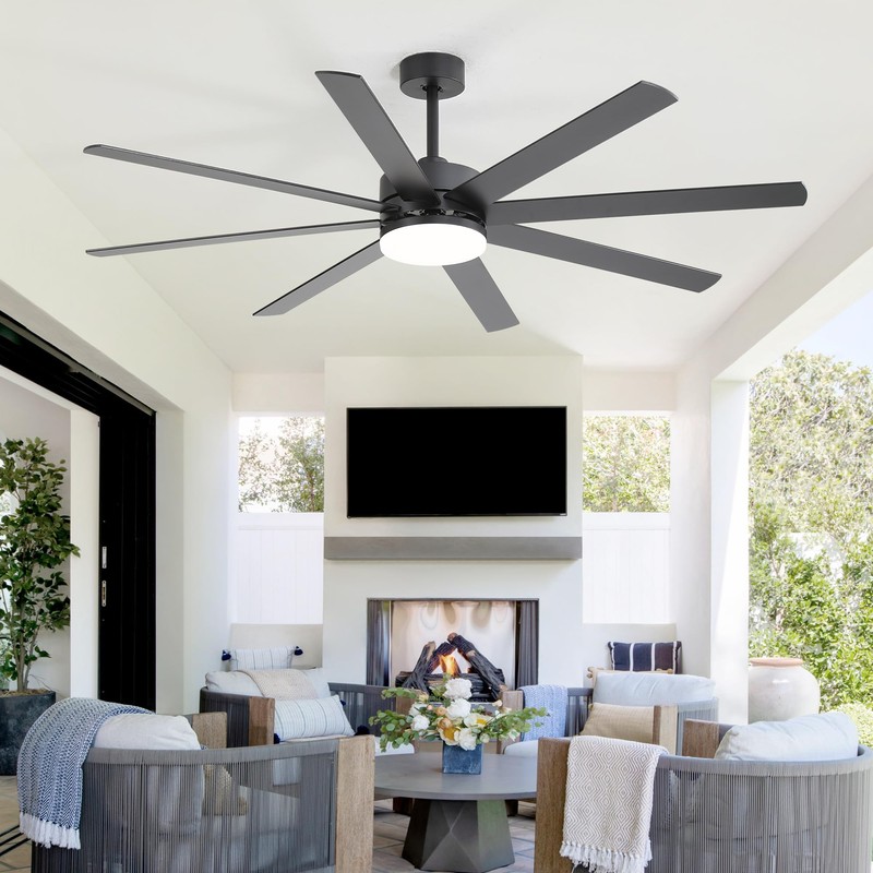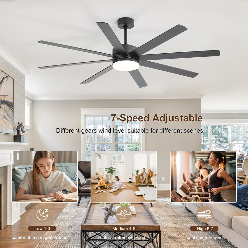 Fanerody 72-Inch 8-Blade Modern Ceiling Fan with Light and Remote Control,6-Speed Reversible Quiet DC Motor,Suitable for Terraces,Porches,Canopies,Black.