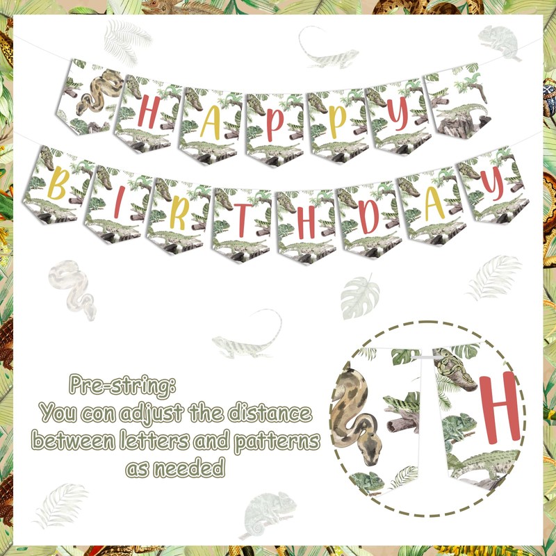 - Reptile Banner Garland Decorations Set: The whole package includes 1 x insect themed HAPPY BIRTHDAY banner. Decorating your party scene with our banner will make big hit at your party!