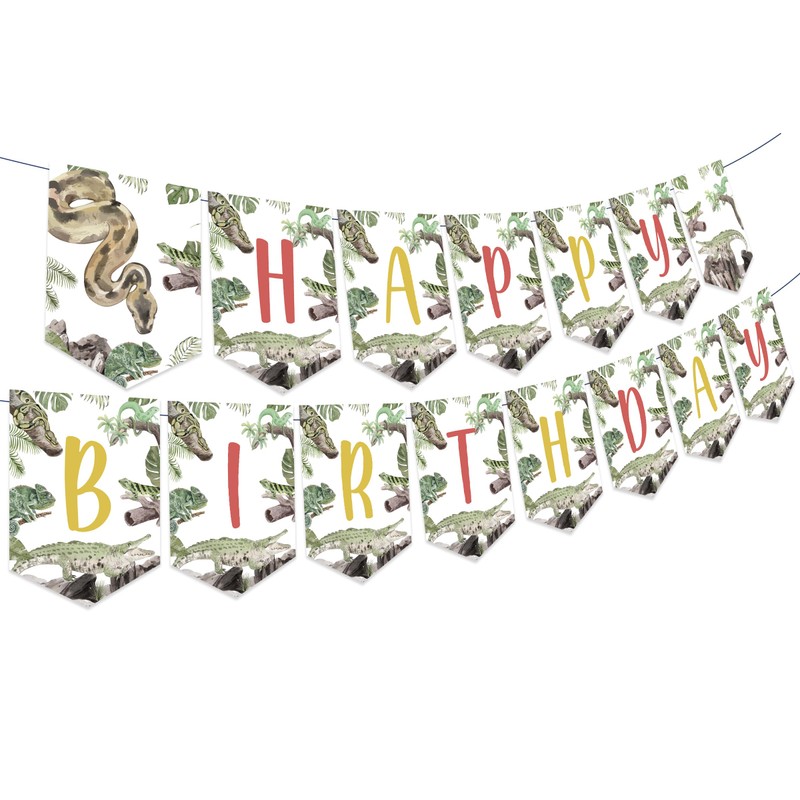 Package Includes: 1 x reptile themed HAPPY BIRTHDAY banner Material: Cardstock Occasion: Birthday Theme: Reptile