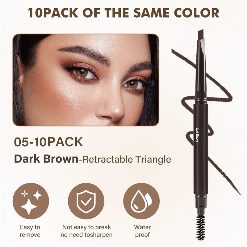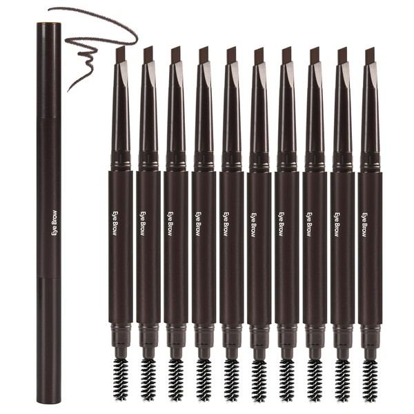 FangTangDI Ultimate Eye Brow Pencils Set for Women, 10Pcs Retractable Double-ended Eyebrow Pen with Brow Brush, Shaping & Filling, Contours, Definers, Fine Tip (05-10Pcs-Dark Brown)